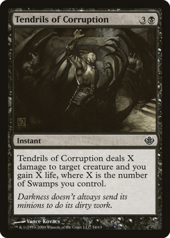 Tendrils of Corruption deals X damage to target creature and you gain X life, where X is the number of Swamps you control.