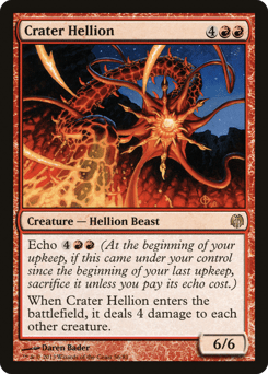 Echo {4}{R}{R} (At the beginning of your upkeep, if this came under your control since the beginning of your last upkeep, sacrifice it unless you pay its echo cost.) When this creature enters, it deals 4 damage to each other creature.