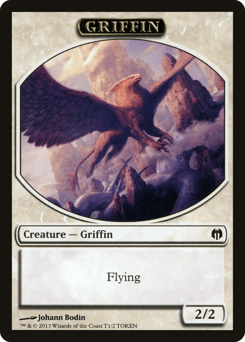 Enchant creature Enchanted creature gets +2/+2 and has flying. When enchanted creature dies, create a 2/2 white Griffin creature token with flying.