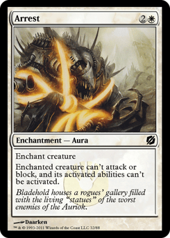 Enchant creature Enchanted creature can't attack or block, and its activated abilities can't be activated.