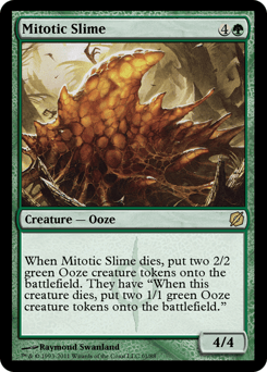 When this creature dies, create two 2/2 green Ooze creature tokens. They have "When this token dies, create two 1/1 green Ooze creature tokens."