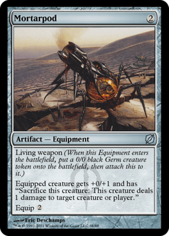 Living weapon (When this Equipment enters, create a 0/0 black Phyrexian Germ creature token, then attach this to it.) Equipped creature gets +0/+1 and has "Sacrifice this creature: This creature deals 1 damage to any target." Equip {2}