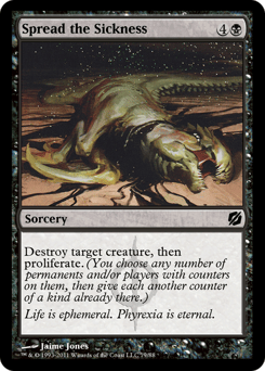 Destroy target creature, then proliferate. (Choose any number of permanents and/or players, then give each another counter of each kind already there.)