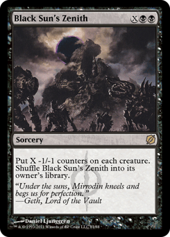 Put X -1/-1 counters on each creature. Shuffle Black Sun's Zenith into its owner's library.