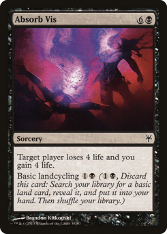 Target player loses 4 life and you gain 4 life. Basic landcycling {1}{B} ({1}{B}, Discard this card: Search your library for a basic land card, reveal it, put it into your hand, then shuffle.)