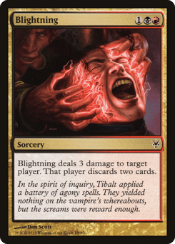 Blightning deals 3 damage to target player or planeswalker. That player or that planeswalker's controller discards two cards.