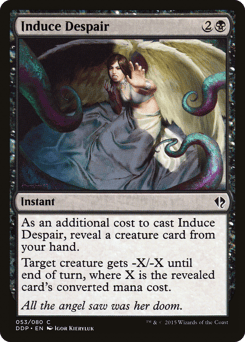 As an additional cost to cast this spell, reveal a creature card from your hand. Target creature gets -X/-X until end of turn, where X is the revealed card's mana value.