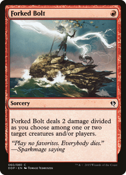 Forked Bolt deals 2 damage divided as you choose among one or two targets.