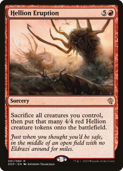 Sacrifice all creatures you control, then create that many 4/4 red Hellion creature tokens.