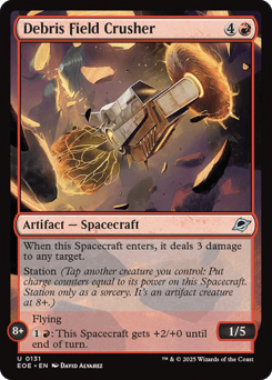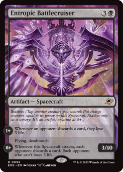 Station (Tap another creature you control: Put charge counters equal to its power on this Spacecraft. Station only as a sorcery. It's an artifact creature at 8+.) Station 1+: Whenever an opponent discards a card, they lose 3 life. Station 8+: Flying, deathtouch Whenever this Spacecraft attacks, each opponent discards a card. Each opponent who doesn't loses 3 life.