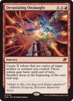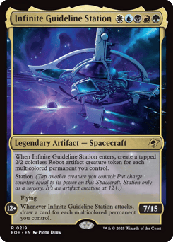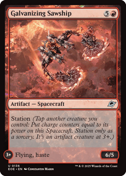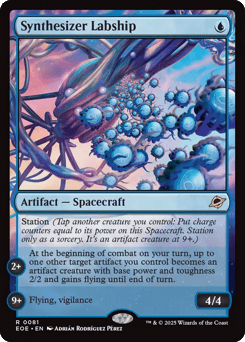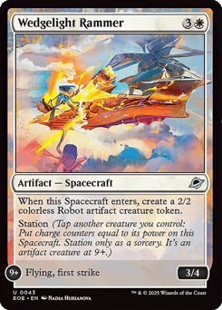 Station (Tap another creature you control: Put charge counters equal to its power on this Spacecraft. Station only as a sorcery. It's an artifact creature at 9+.) Station 2+: At the beginning of combat on your turn, up to one other target artifact you control becomes an artifact creature with base power and toughness 2/2 and gains flying until end of turn. Station 9+: Flying, vigilance