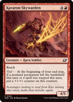 Ward—Discard a card at random. Void — Whenever Alpharael attacks, if a nonland permanent left the battlefield this turn or a spell was warped this turn, defending player loses half their life, rounded up.