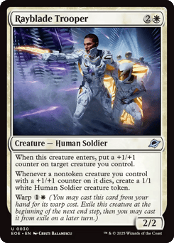 When this creature enters, create a 1/1 white Human Soldier creature token. Warp {1}{W} (You may cast this card from your hand for its warp cost. Exile this creature at the beginning of the next end step, then you may cast it from exile on a later turn.)