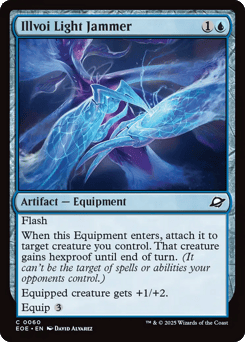 Flash When this Equipment enters, attach it to target creature you control. That creature gains hexproof until end of turn. (It can't be the target of spells or abilities your opponents control.) Equipped creature gets +1/+2. Equip {3}