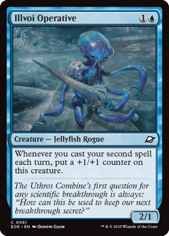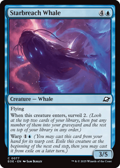 Flying When this creature enters, surveil 2. (Look at the top two cards of your library, then put any number of them into your graveyard and the rest on top of your library in any order.) Warp {1}{U} (You may cast this card from your hand for its warp cost. Exile this creature at the beginning of the next end step, then you may cast it from exile on a later turn.)
