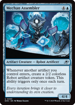 Whenever another artifact you control enters, create a 2/2 colorless Robot artifact creature token. This ability triggers only once each turn.