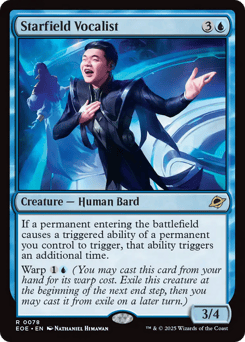 If a permanent entering the battlefield causes a triggered ability of a permanent you control to trigger, that ability triggers an additional time. Warp {1}{U} (You may cast this card from your hand for its warp cost. Exile this creature at the beginning of the next end step, then you may cast it from exile on a later turn.)