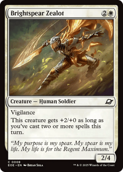 Vigilance This creature gets +2/+0 as long as you've cast two or more spells this turn.