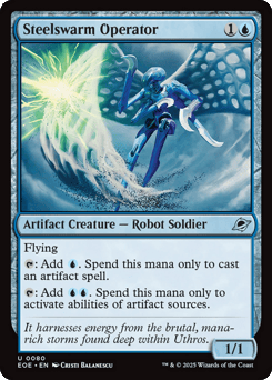 Flying {T}: Add {U}. Spend this mana only to cast an artifact spell. {T}: Add {U}{U}. Spend this mana only to activate abilities of artifact sources.