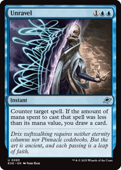 Counter target spell. If the amount of mana spent to cast that spell was less than its mana value, you draw a card.