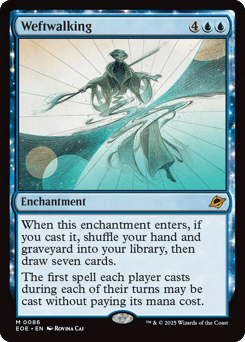 When this enchantment enters, if you cast it, shuffle your hand and graveyard into your library, then draw seven cards. The first spell each player casts during each of their turns may be cast without paying its mana cost.