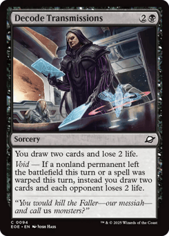You draw two cards and lose 2 life. Void — If a nonland permanent left the battlefield this turn or a spell was warped this turn, instead you draw two cards and each opponent loses 2 life.