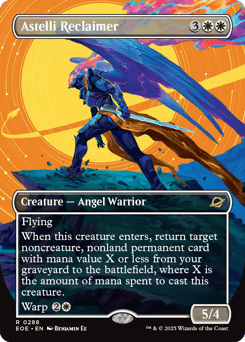 Flying When this creature enters, return target noncreature, nonland permanent card with mana value X or less from your graveyard to the battlefield, where X is the amount of mana spent to cast this creature. Warp {2}{W}