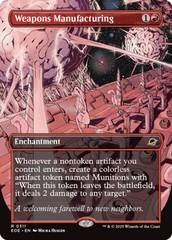 Whenever a nontoken artifact you control enters, create a colorless artifact token named Munitions with "When this token leaves the battlefield, it deals 2 damage to any target."