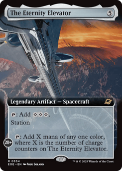 {T}: Add {C}{C}{C}. Station (Tap another creature you control: Put charge counters equal to its power on this Spacecraft. Station only as a sorcery.) Station 20+: {T}: Add X mana of any one color, where X is the number of charge counters on The Eternity Elevator.