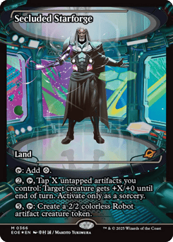{T}: Add {C}. {2}, {T}, Tap X untapped artifacts you control: Target creature gets +X/+0 until end of turn. Activate only as a sorcery. {5}, {T}: Create a 2/2 colorless Robot artifact creature token.
