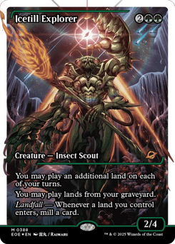 You may play an additional land on each of your turns. You may play lands from your graveyard. Landfall — Whenever a land you control enters, mill a card.