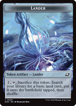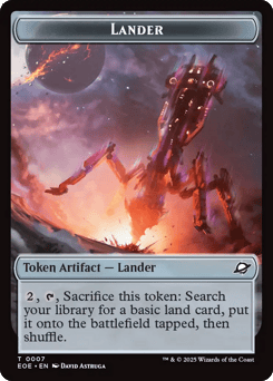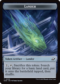When this creature enters, create a Lander token. (It's an artifact with "{2}, {T}, Sacrifice this token: Search your library for a basic land card, put it onto the battlefield tapped, then shuffle.") Whenever you sacrifice an artifact, this creature deals 2 damage to target opponent.