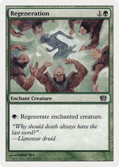 Enchant creature (Target a creature as you cast this. This card enters attached to that creature.) {G}: Regenerate enchanted creature. (The next time that creature would be destroyed this turn, instead tap it, remove it from combat, and heal all damage on it.)