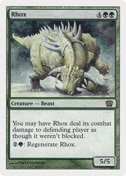 You may have this creature assign its combat damage as though it weren't blocked. {2}{G}: Regenerate this creature. (The next time this creature would be destroyed this turn, instead tap it, remove it from combat, and heal all damage on it.)