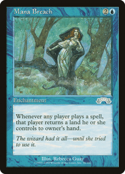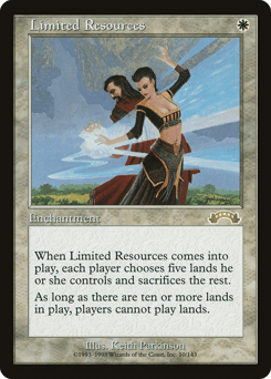 When this enchantment enters, each player chooses five lands they control and sacrifices the rest. Players can't play lands as long as ten or more lands are on the battlefield.