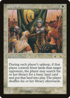 At the beginning of each player's upkeep, that player chooses target player who controls more lands than they do and is their opponent. The first player may search their library for a basic land card, put that card onto the battlefield, then shuffle.