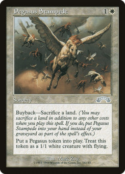 Buyback—Sacrifice a land. (You may sacrifice a land in addition to any other costs as you cast this spell. If you do, put this card into your hand as it resolves.) Create a 1/1 white Pegasus creature token with flying.