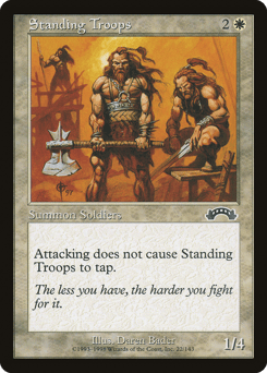 This creature can't attack unless you control more lands than defending player. This creature can't block unless you control more lands than attacking player.
