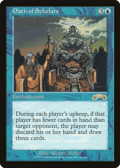 At the beginning of each player's upkeep, that player chooses target player who has more cards in hand than they do and is their opponent. The first player may discard their hand and draw three cards.