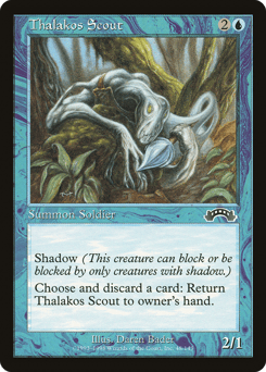 Shadow (This creature can block or be blocked by only creatures with shadow.) Discard a card: Return this creature to its owner's hand.