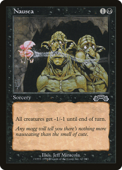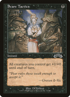 Enchant creature Enchanted creature gets -1/-1 and has fear. (It can't be blocked except by artifact creatures and/or black creatures.)