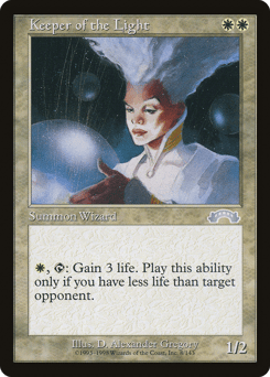 {W}, {T}: Choose target opponent who has more life than you do as you activate this ability. You gain 3 life.
