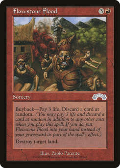 Buyback—Pay 3 life, Discard a card at random. (You may pay 3 life and discard a card at random in addition to any other costs as you cast this spell. If you do, put this card into your hand as it resolves.) Destroy target land.