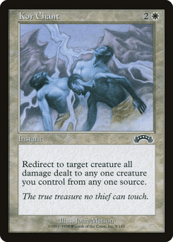 All damage that would be dealt this turn to target creature you control by a source of your choice is dealt to another target creature instead.