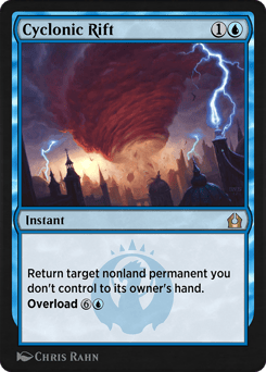 Return target nonland permanent you don't control to its owner's hand. Overload {6}{U} (You may cast this spell for its overload cost. If you do, change "target" in its text to "each.")