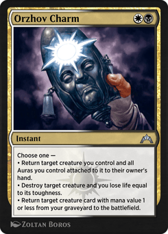 Choose one — • Return target creature you control and all Auras you control attached to it to their owner's hand. • Destroy target creature and you lose life equal to its toughness. • Return target creature card with mana value 1 or less from your graveyard to the battlefield.