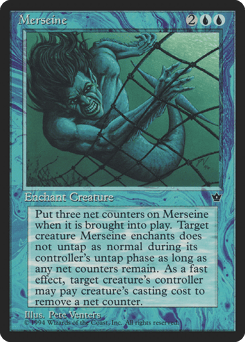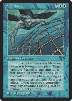 Enchant creature This Aura enters with three net counters on it. Enchanted creature doesn't untap during its controller's untap step if this Aura has a net counter on it. Pay enchanted creature's mana cost: Remove a net counter from this Aura. Only the controller of the enchanted creature may activate this ability.