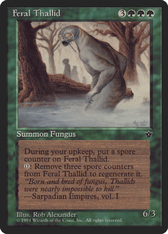 At the beginning of your upkeep, put a spore counter on this creature. Remove three spore counters from this creature: Regenerate this creature.