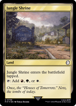 This land enters tapped. When this land enters, scry 1. (Look at the top card of your library. You may put that card on the bottom.) {T}: Add {R} or {G}.