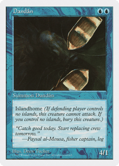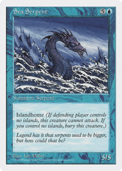This creature can't attack unless defending player controls an Island. When you control no Islands, sacrifice this creature.